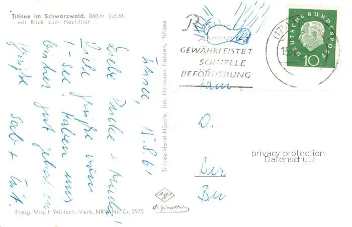 Titisee Fliegeraufnahme mit Neustadt Hochfirst und Lenzkirch Titisee postalisch gelaufen 1961 Erhaltung siehe scans [WerneD78] WernPID7