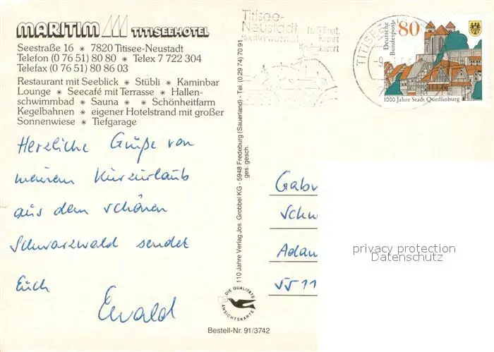 Titisee-Neustadt Maritim Titiseehotel Titisee-Neustadt postalisch gelaufen 1995 Erhaltung siehe scans [WerneD78] WernPID7