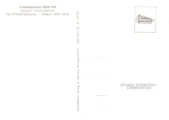 Titisee Pension Haus Ria Feldberggebiet Schwarzwald Titisee postalisch nicht gelaufen nach 1965 Erhaltung siehe scans [FriedD77] Frierer
