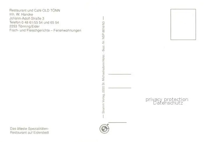 Toenning_Nordseebad Restaurant Cafe Old Toenn Gastraeume Toenning_Nordseebad postalisch nicht gelaufen 1921-1965 Erhaltung siehe scans [WerneD78] WernPID7