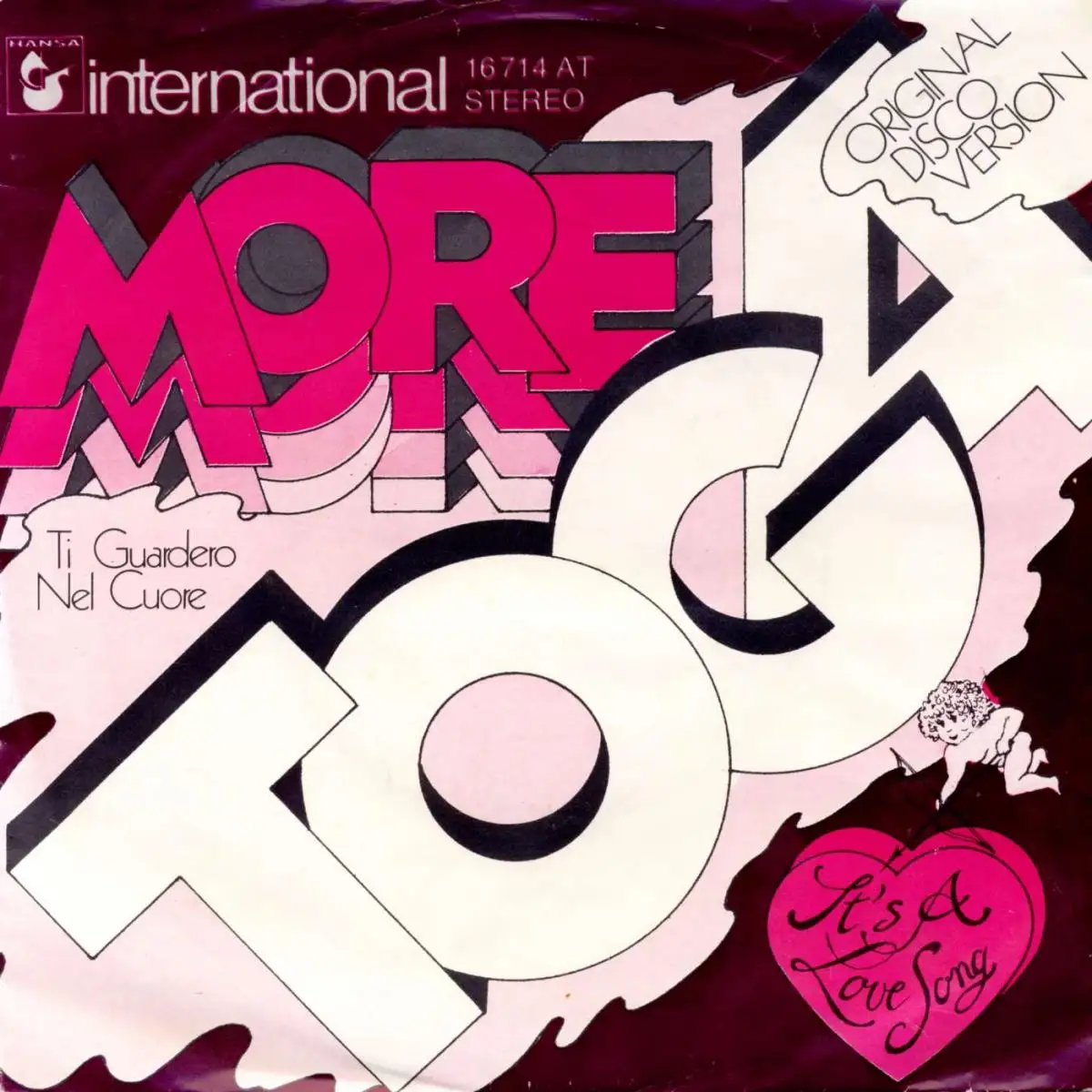 7" Single Toga - More Ti Guardero Nel Cuore, État Platte VG+ Hülle VD+; Fabriqué en Allemagne 1976 Hansa 16 714 AT, Tracks Mores Ti Gardero Nelson Cuora 3:16, It's A Love Song 3:02
