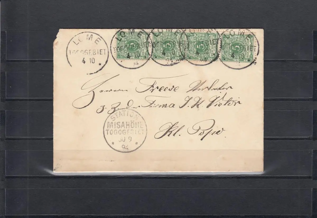 Togo 1894: Lome avec cachet de station Misahöhe, Préface, BPP Attest