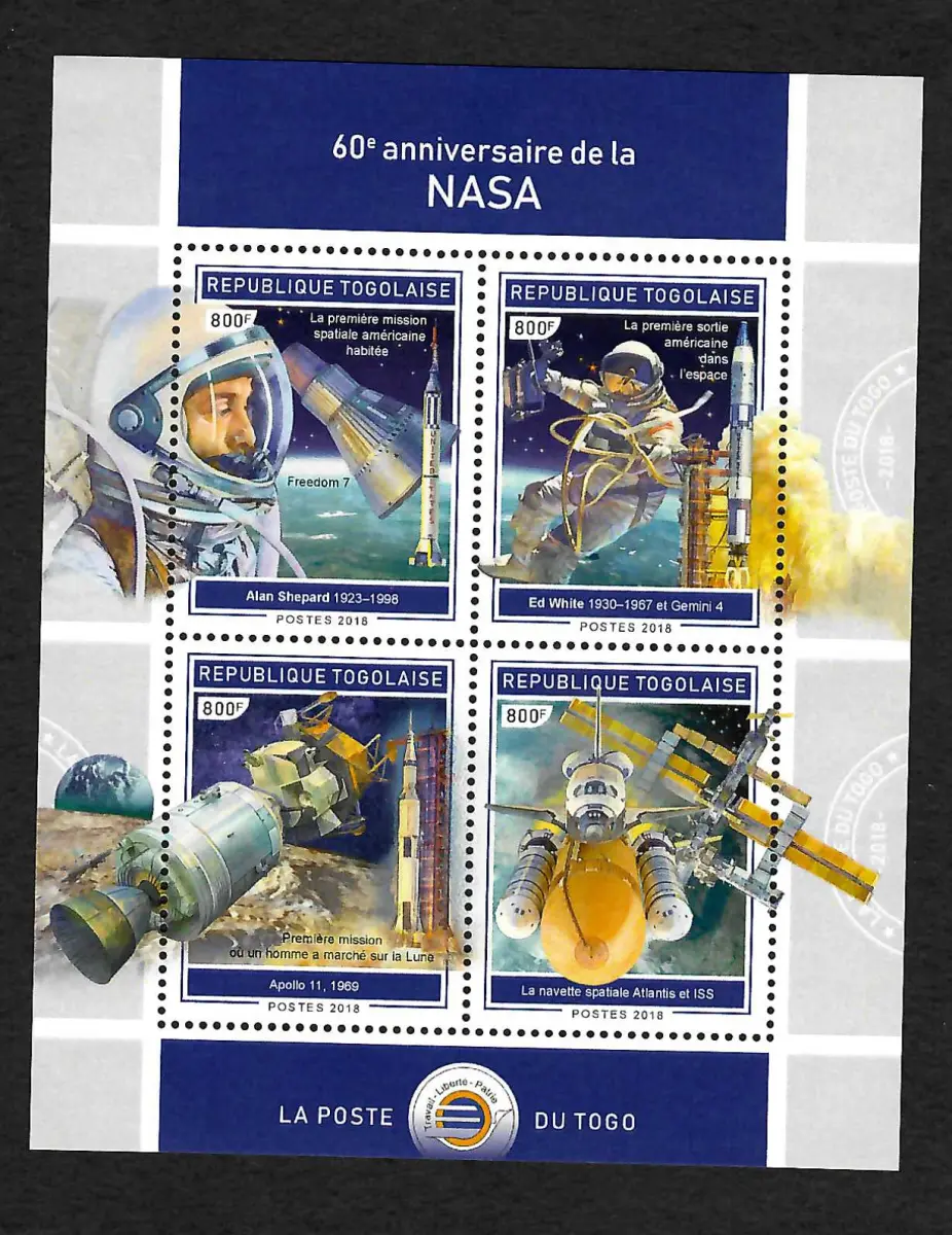 Togo 2019: Apollo 11 Weltraum, 60 Jahre NASA, postfrisch