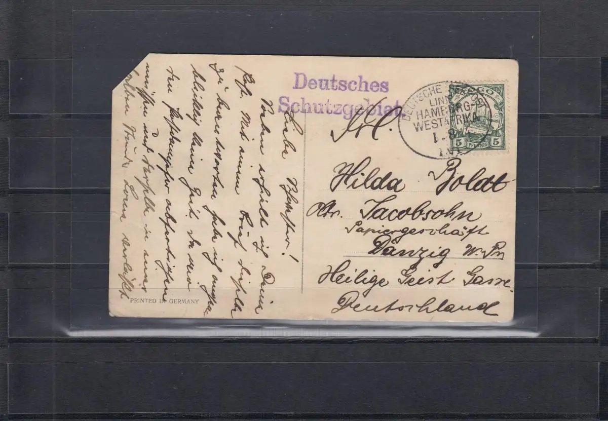 Togo AK 1914: Ligne maritime allemande Hambourg-Afrique de l'Ouest "Zone protégée allemande"