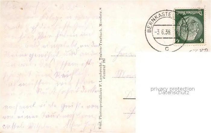 Traben-Trarbach Panorama Moseltal Weinberge Traben-Trarbach postalisch gelaufen 1938 Erhaltung siehe scans [FriedD77] Frierer