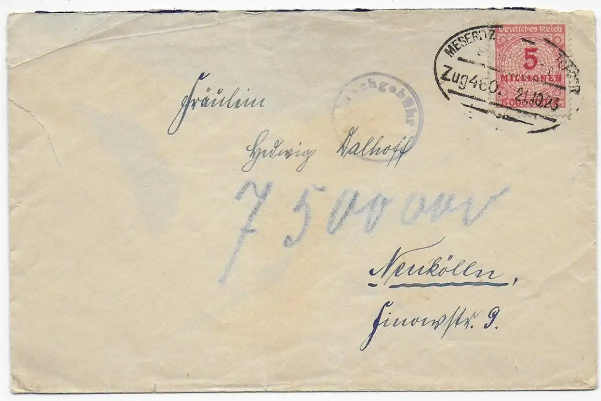 Train ferroviaire n° 460 avec un supplément de 7,5 millions, 21.10.1923 à Neukölln
