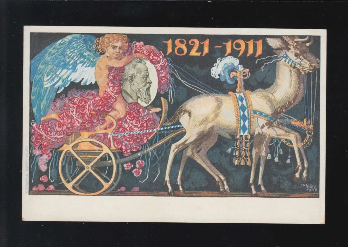 Transport routier Prunkwagen sign.Diez Artiste Royaume de Bavière Munich 12.3.1911