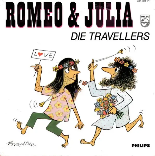 7" Single Die Travellers - Romeo & Julia, État Platte G+ Hülle VG; Fabriqué en Allemagne 1968 Philips 384 501 PF, Tracks Romeo et Juliette 2:37, Kaisers Bart 2: 37
