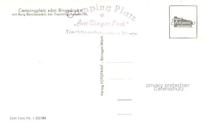 Trechtingshausen Campingplatz Am Bingerloch am Rhein Burg Reichenstein Trechtingshausen postalisch nicht gelaufen 1921-1965 Erhaltung siehe scans [FriedD77] Frierer