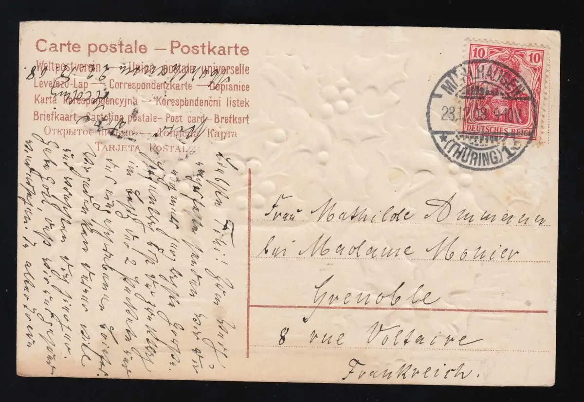Tricolore avec des palmiers et des baies, Joyeux Noël, Mühlhausen23.12.1908