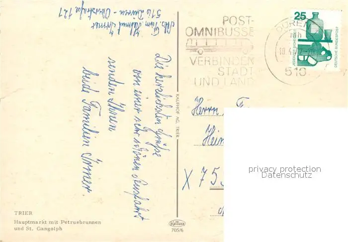 Trier Hauptmarkt mit Petrusbrunnen und St Gangolph Trier postalisch gelaufen 1977 Erhaltung siehe scans [WerneD78] WernPID7