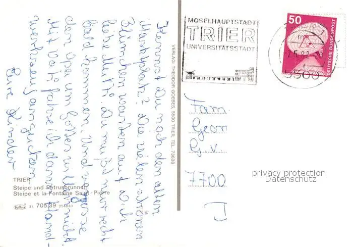 Trier Steipe und Petrusbrunnen Trier postalisch gelaufen 1982 Erhaltung siehe scans [LiesaD40] LiesID40