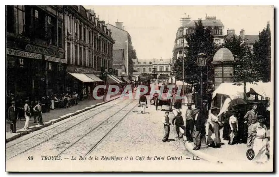 Troyes Cartes postales La rue de la Republique et le cafe du point central