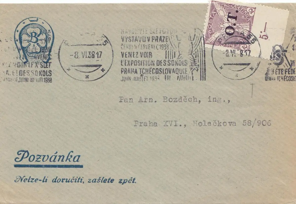 République tchèque: 1938: Lettre de Prague, marque avec douche partielle