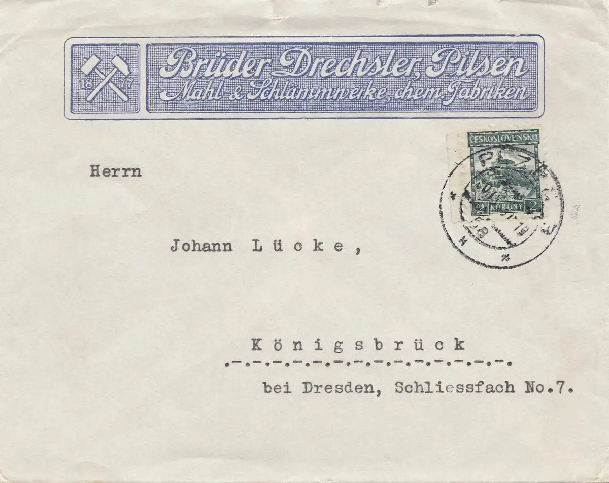 République tchèque: Lettre Frères Drechsler Pilsen après Königsbrück