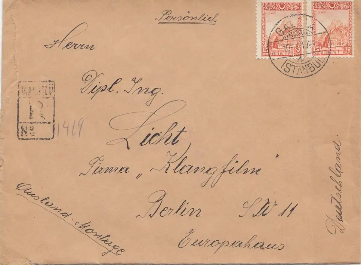 Turquie: 1931: recommandé de Galata à Berlin