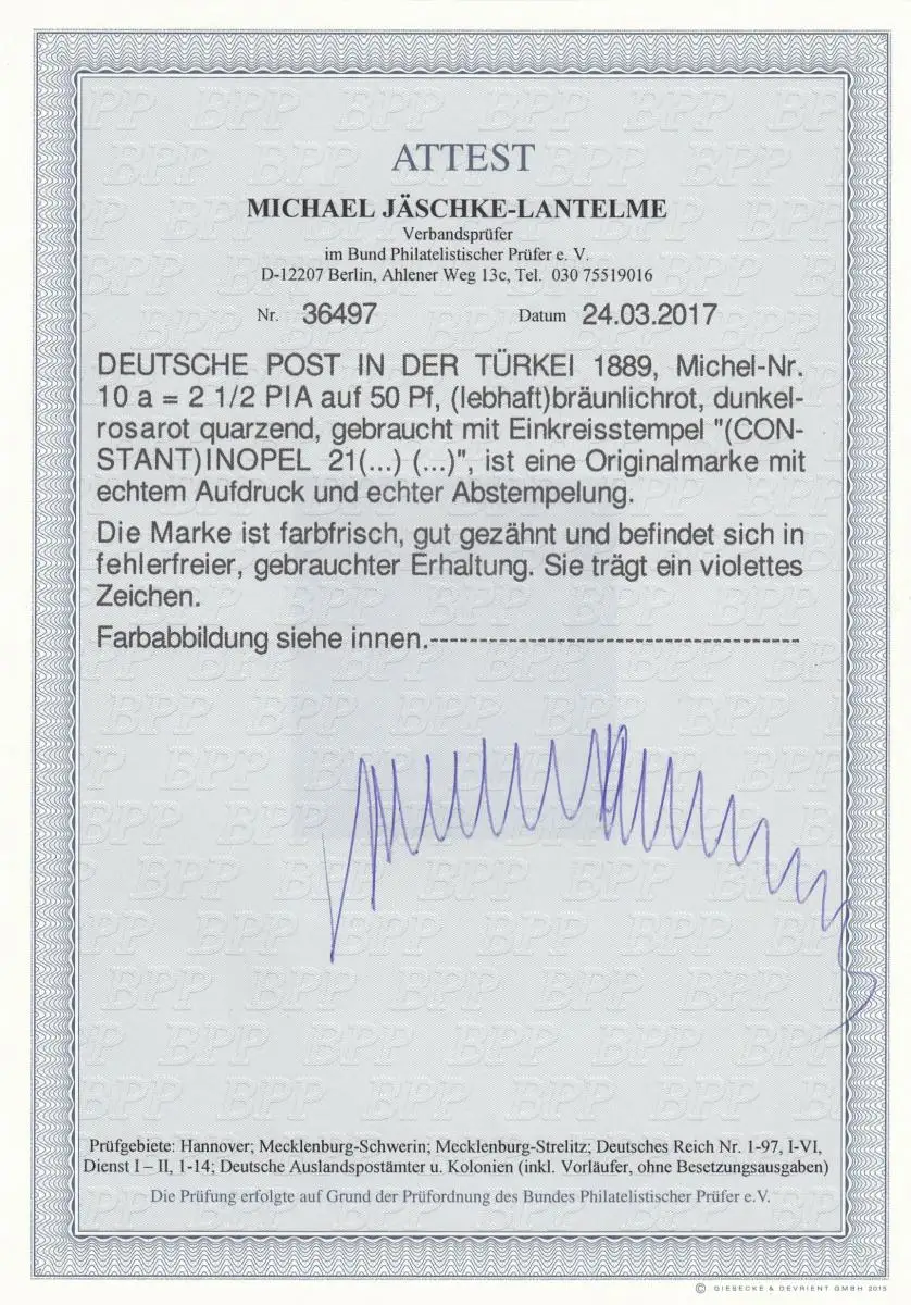 Turquie: Min. 10a , cacheté, BPP Attest