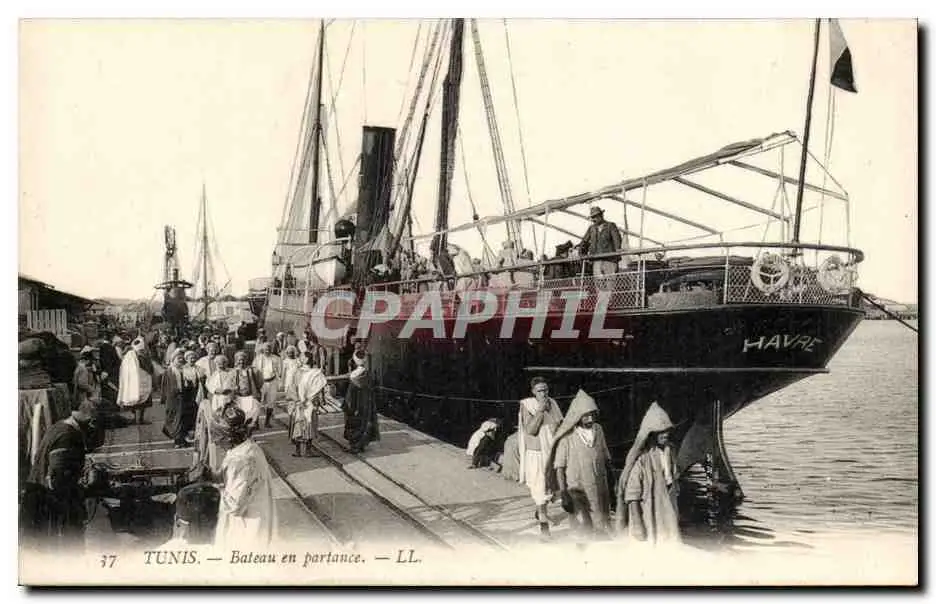 Tunisie Tunis Cartes postales Bateau en partance Havre TOP