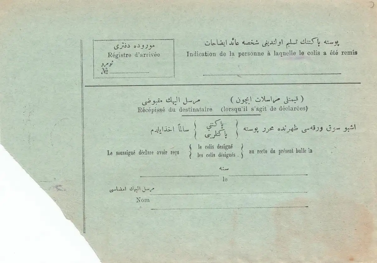 Turquie: Carte de colis de Constantinople/Consantinopel