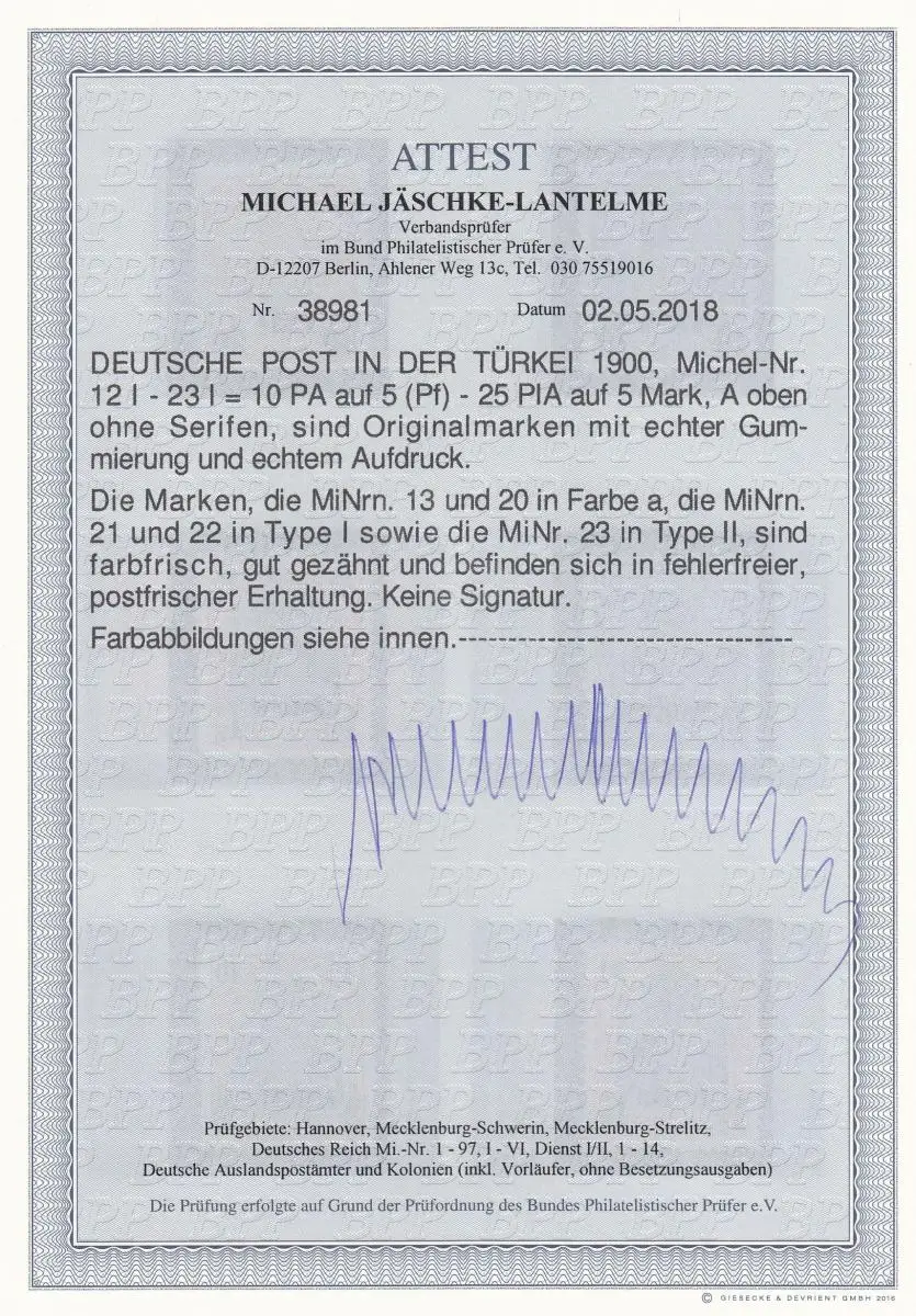 Turquie: Min. 12I - 23I, frais de port, BPP Attest