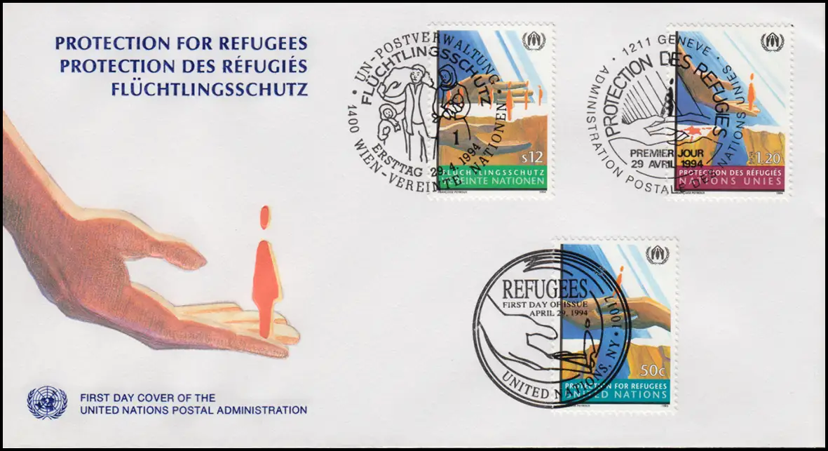 HCR Protection des réfugiés Réfugiés - Bijoux-FDC des 3 dépenses de l'ONU 1994