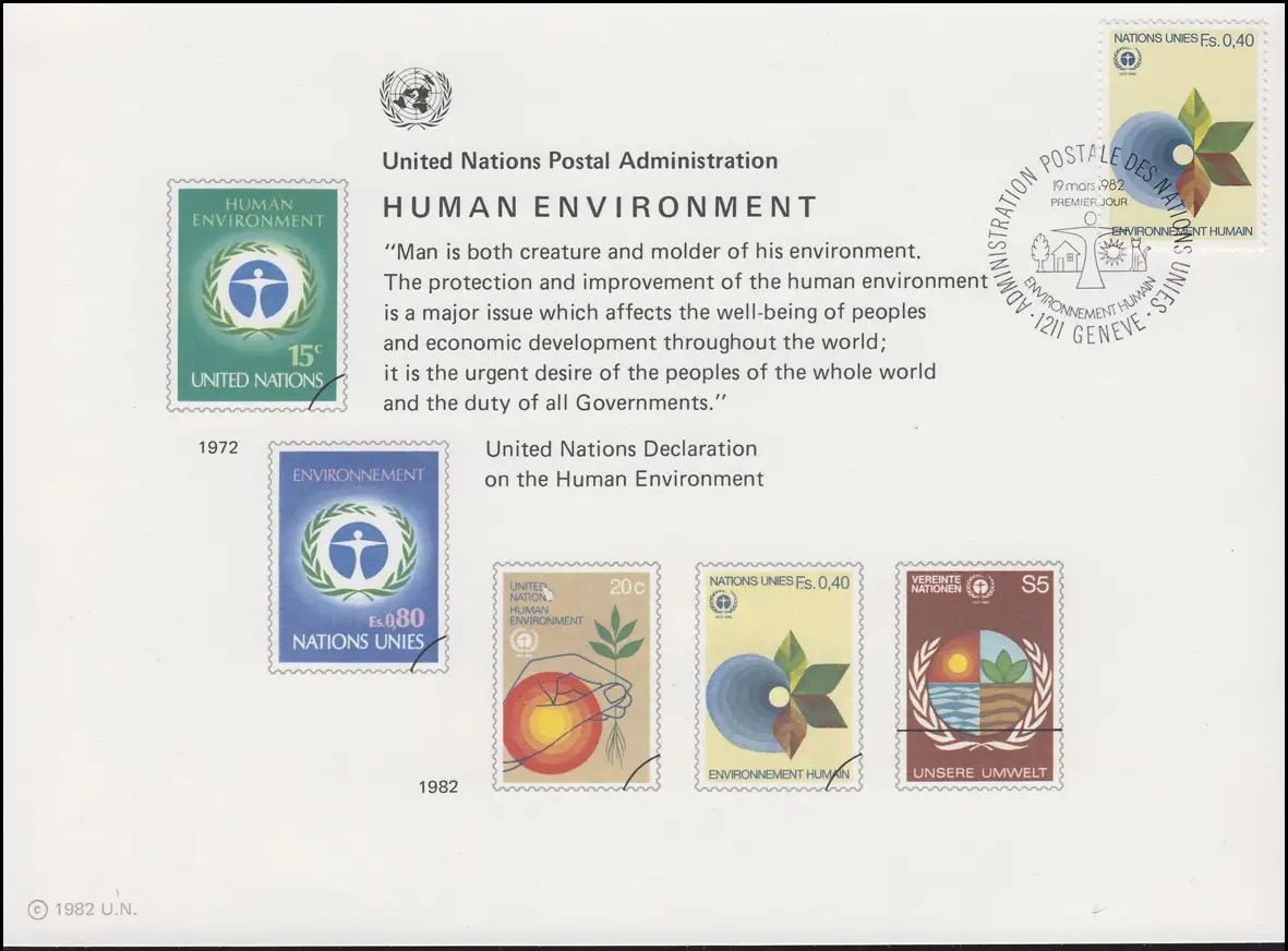 Carte commémorative de l'ONU CE 21 Protection de la nature 1982, Genève-FDC 19.3.1982