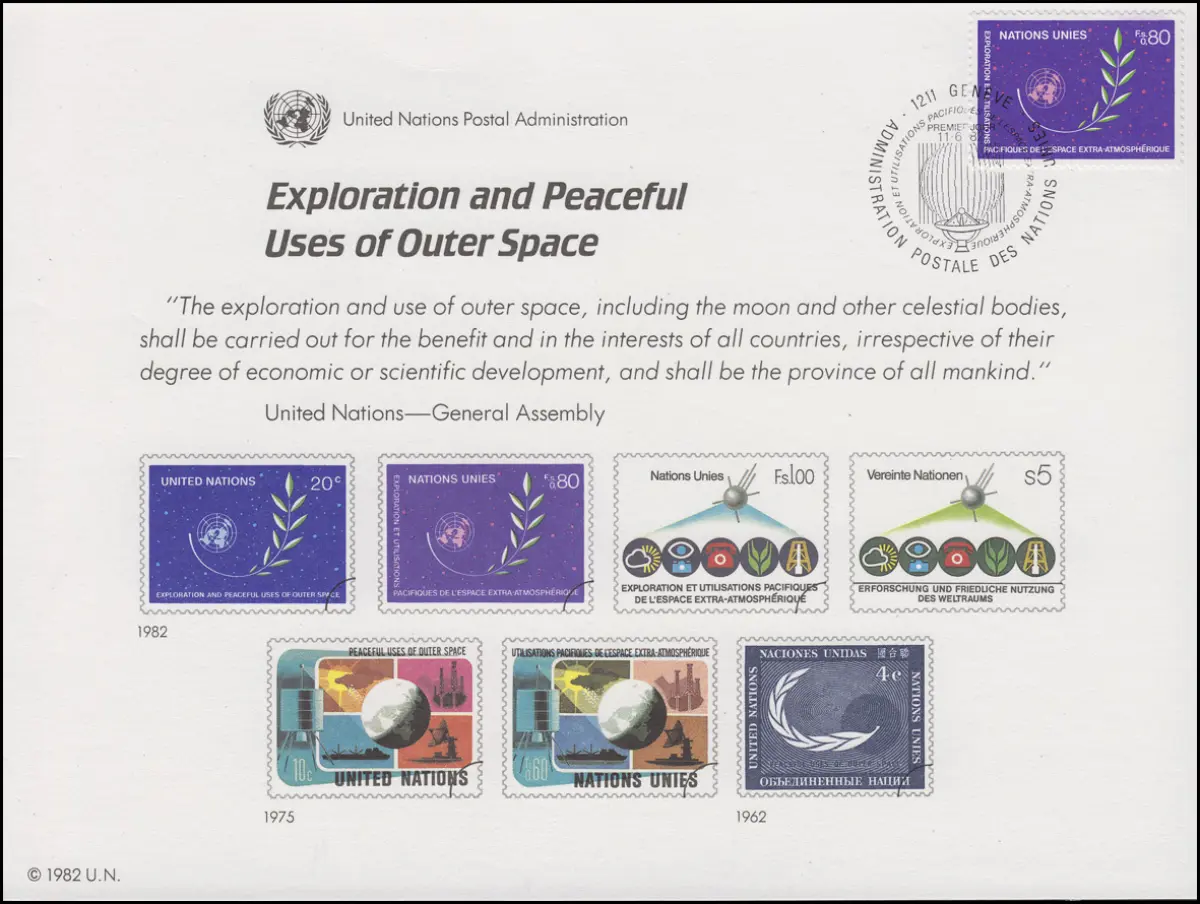 Carte commémorative de l'ONU CE 22 Espace 1982, Genève-FDC 11.6.1982
