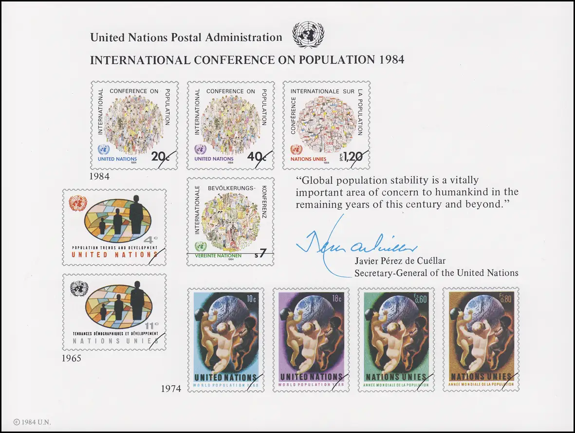 Carte commémorative de l'ONU CE 25 Population mondiale 1984, inutilisé **