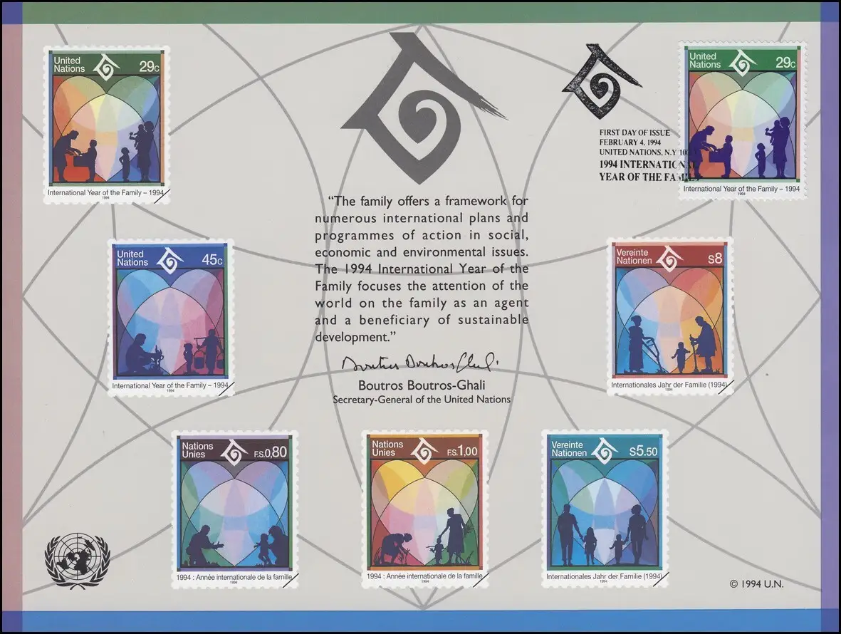 Carte commémorative de l'ONU CE 45 Année de la famille 1994, NY-FDC 4.2.1994