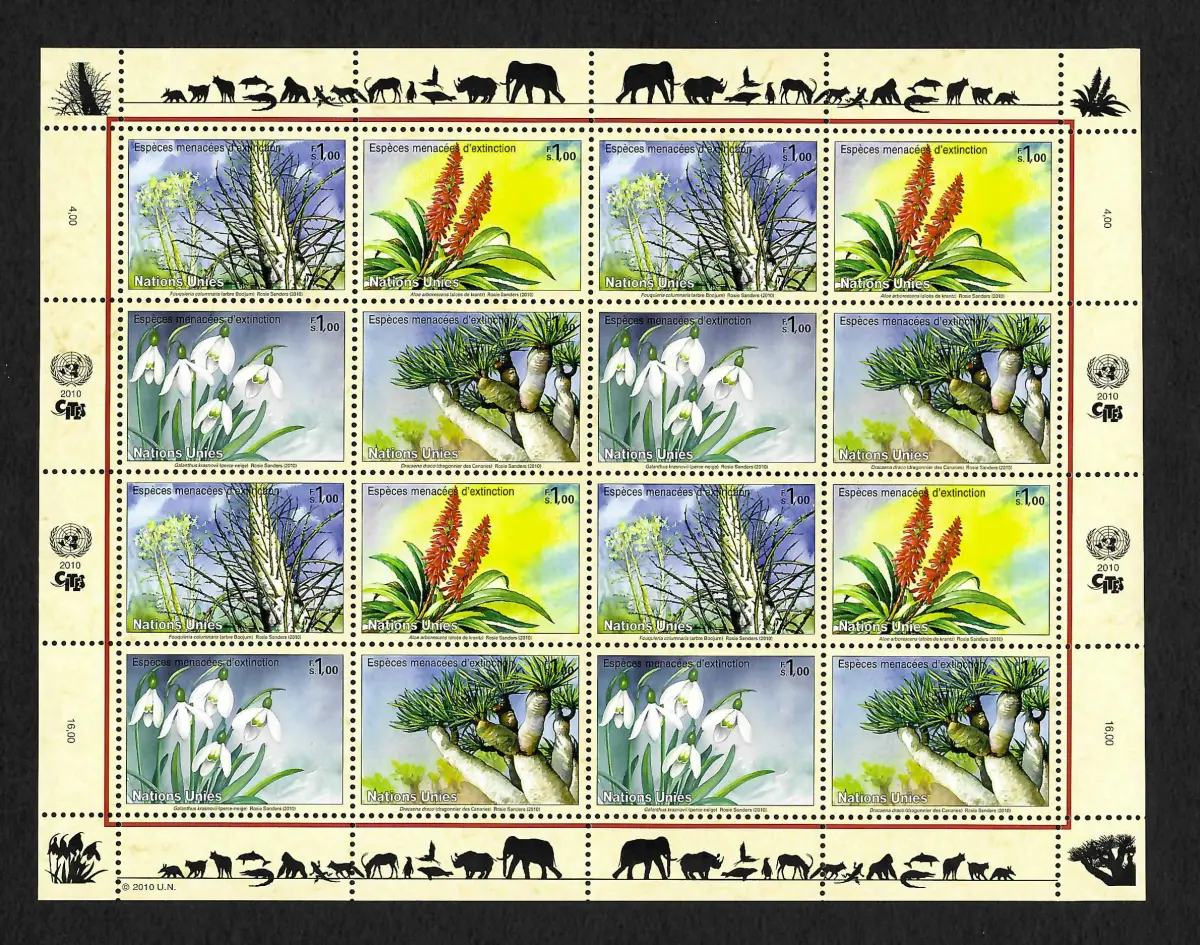 UNO Genf 2021: 4er Block Espèces menacées d' extinction, Kleinbogen postfrisch