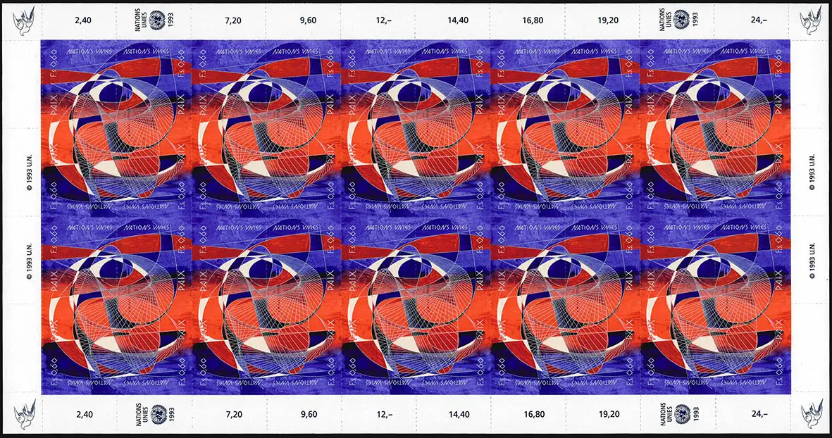 Nations unies Genève 235-238 Journée mondiale de la paix 1993: graphiste Hans Erni, boxe ZD **