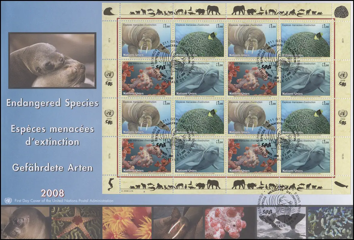 Nations unies Genève 587-591 Animaux marins vulnérables, arcs sur le FDC de bijoux GENEF 2008