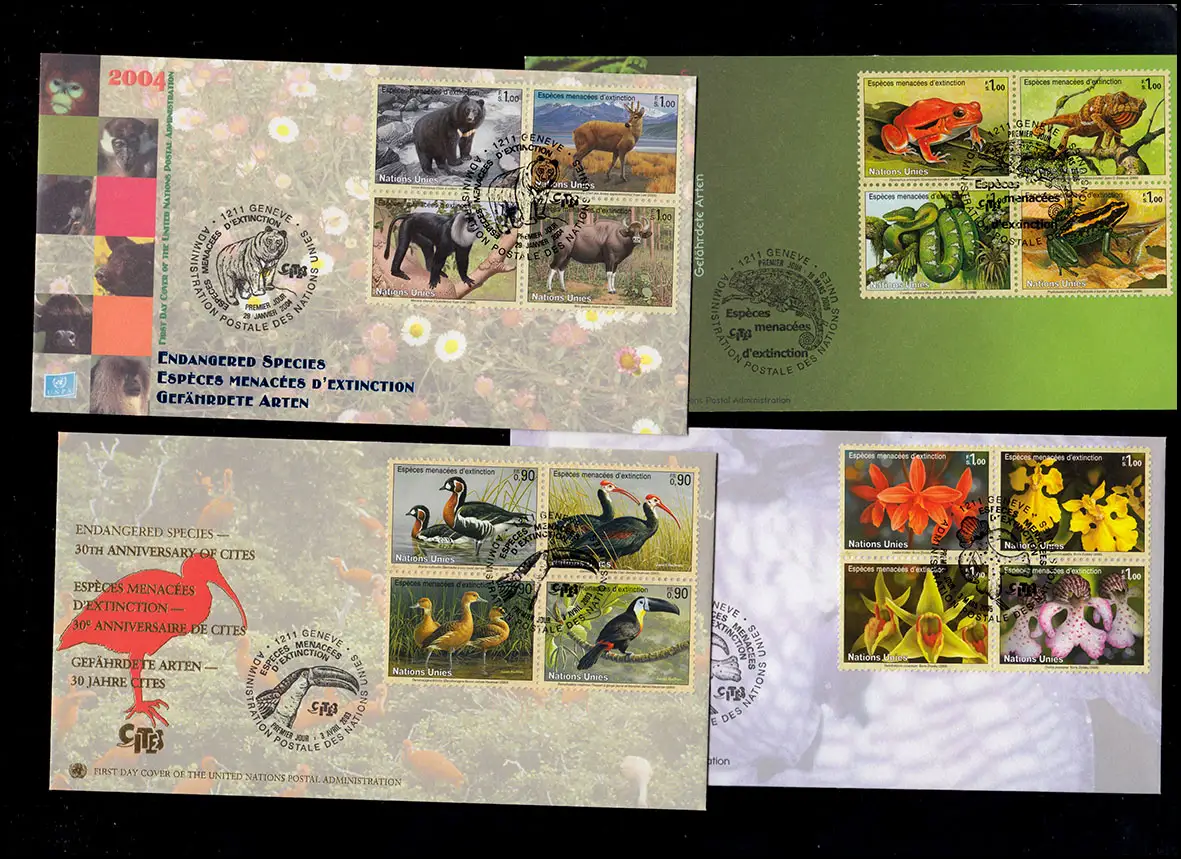 Genève: espèces menacées de 2003 à 2006 en tant que bloc à quatre sur les bijoux FDC