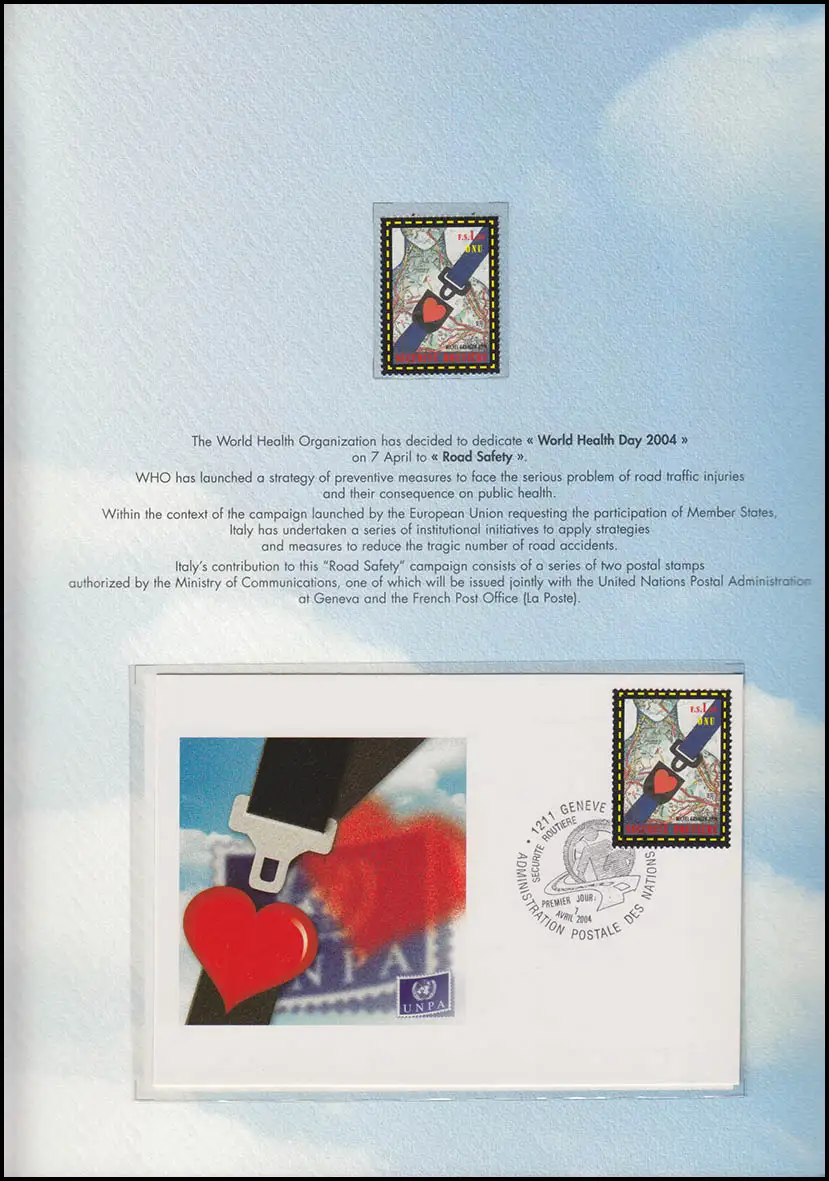 Nations unies Genève Italie France: Journée mondiale de la santé Transport routier, dossier FDC