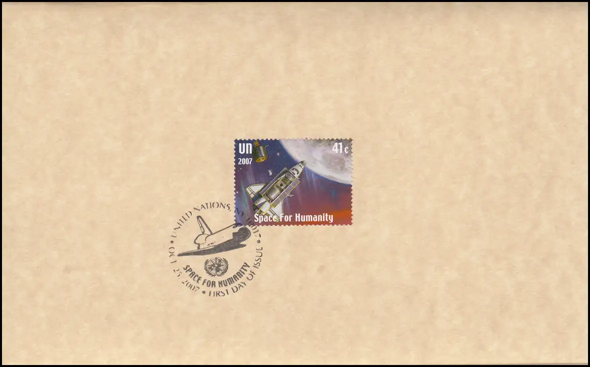 UNO New York 1075 anniversaire 50 ans de voyage spatial 2007 avec ESSt en carte pliante