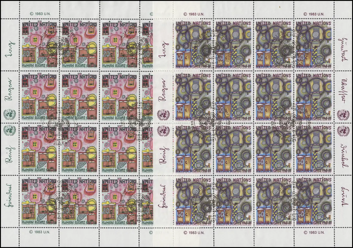 Nations unies New York 438-439 Droits de l'homme / Hundertwasser 1983, feuille de route ESSt