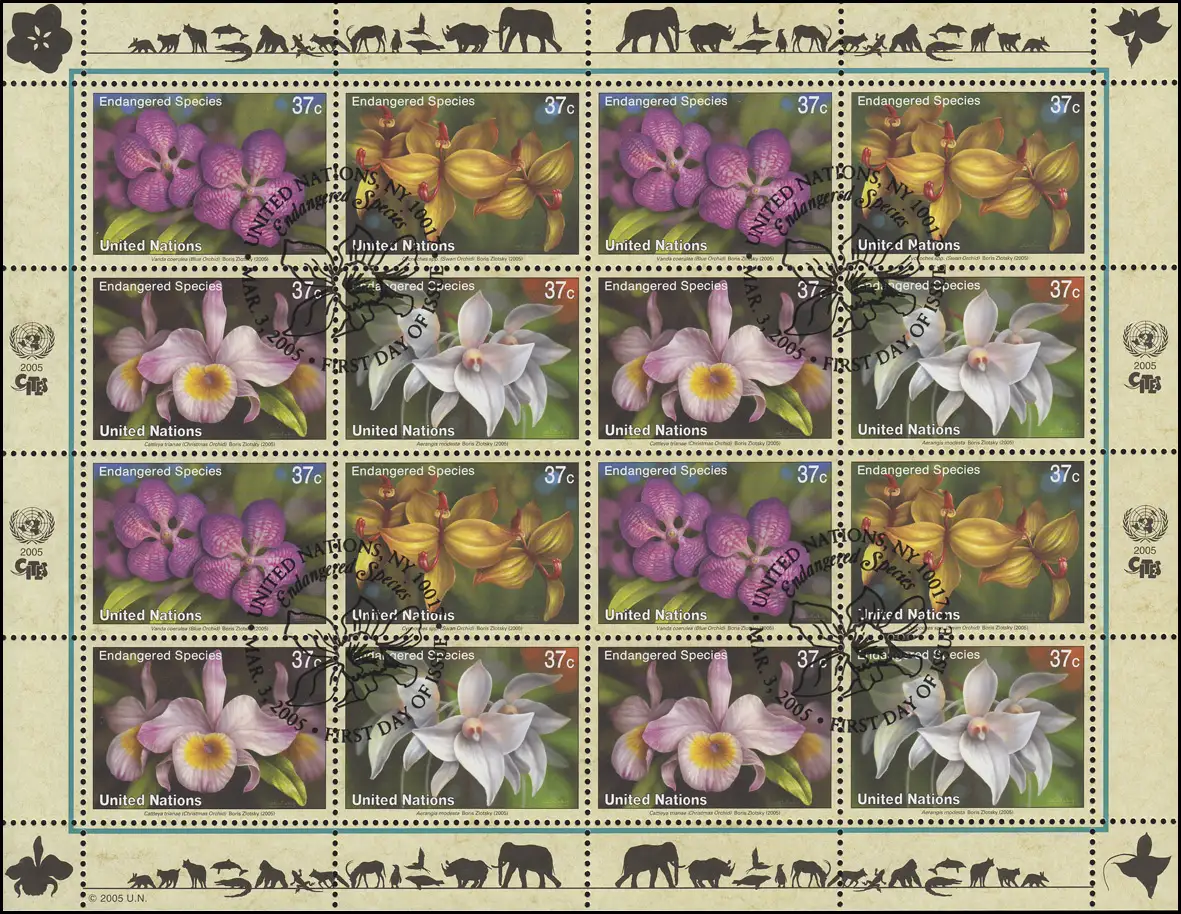 Nations unies New York 973-976 Espèces menacées XIII - Orchidées 2005, Bogen ZD ESSt