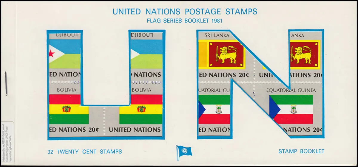 UNO New York AIDIP-Edition Flaggen-Markenheftchen 1981 Nummer 2B (weiß) **