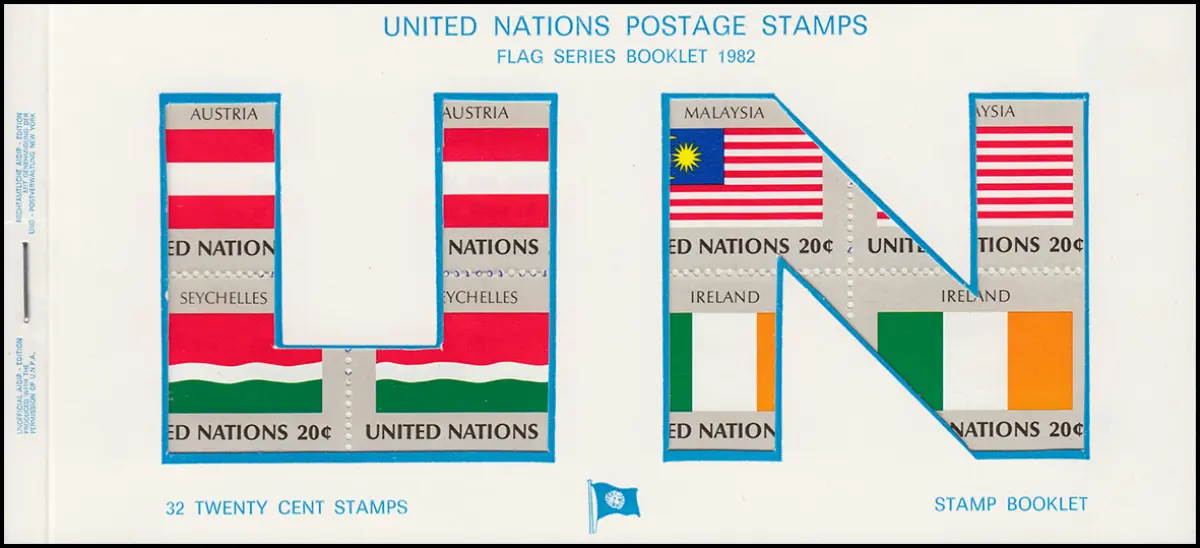 UNO New York AIDIP-Edition Flaggen-Markenheftchen 1982 Nummer 3B (weiß) **