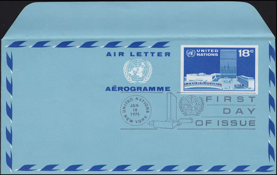UNO New York Lettre postale aérienne LF 7 quartier général 18 cent 1975 FDC 10.1.1975