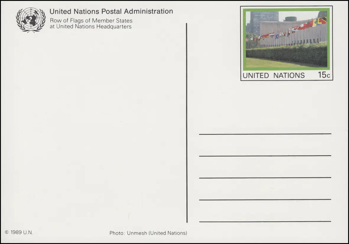 Carte postale des Nations unies P 11 drapeaux 15 centimètre 1989, non utilisé **
