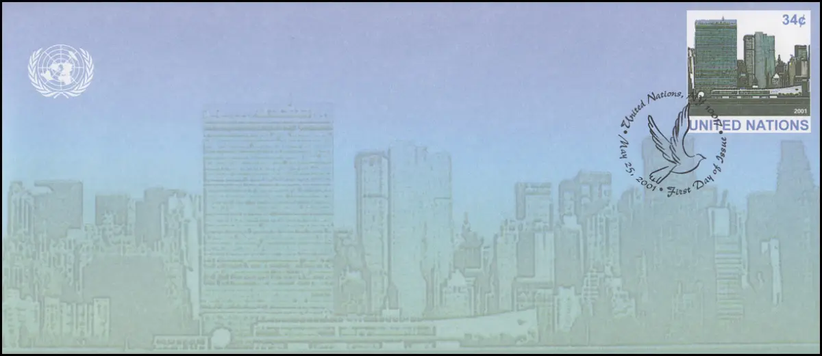 UNO New York couverture U 13B quartier général 34 cent, 2001, 242x105, FDC 25.5.2001
