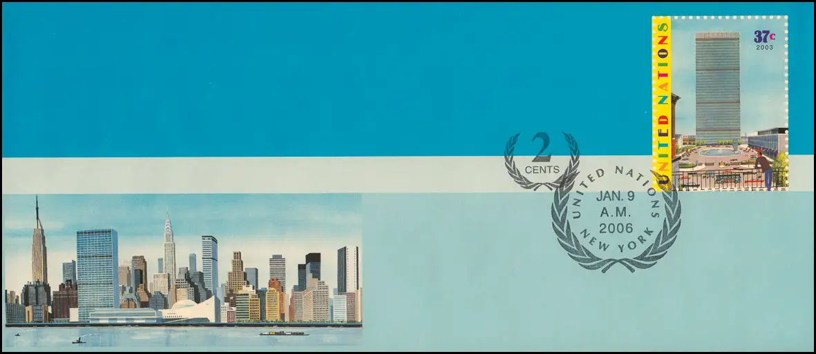 UNO New York couverture U 16B quartier général 37+2 C. 2006, 242x105, FDC 9.1.2006