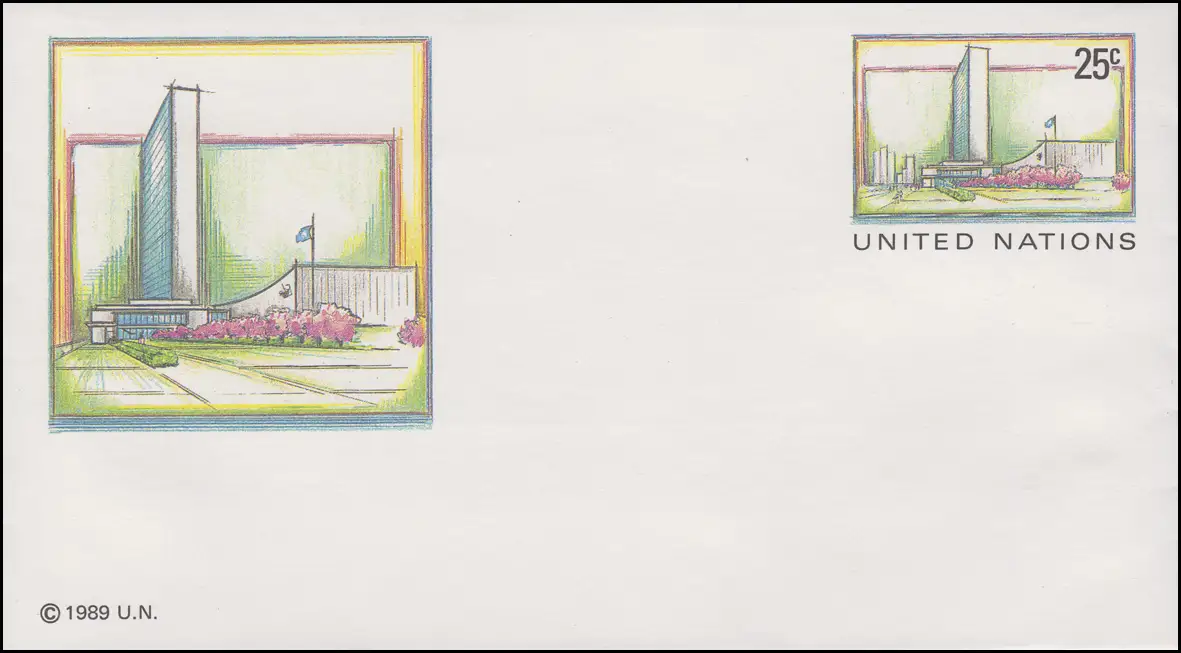 UNO New York Couverture U 8A quartier général 25 cent, 1989, 165x92, inutilisé **