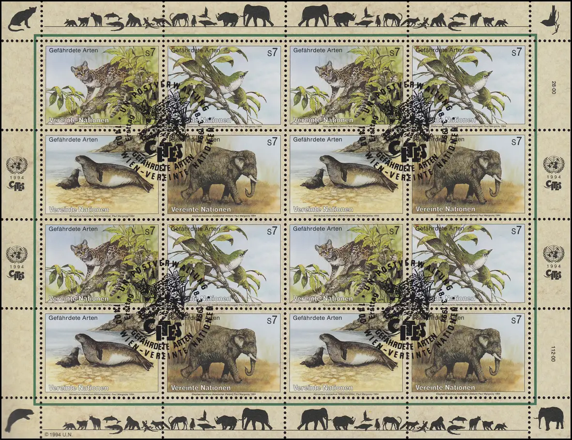 ONU Vienne 162-165 Espèces menacées II - Faune 1994, Bogen ZD ESSt