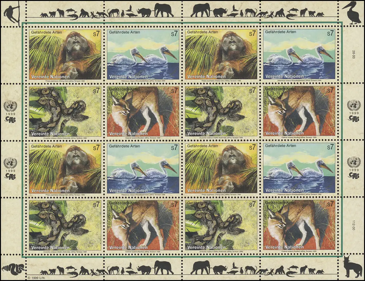 Nations unies Vienne 287-290 Espèces menacées VII - Faune 1999, Bogen ZD **
