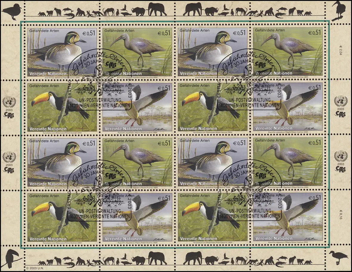 ONU Vienne 389-392 Espèces menacées XI - Oiseaux 2003, Bogen ZD ESSt