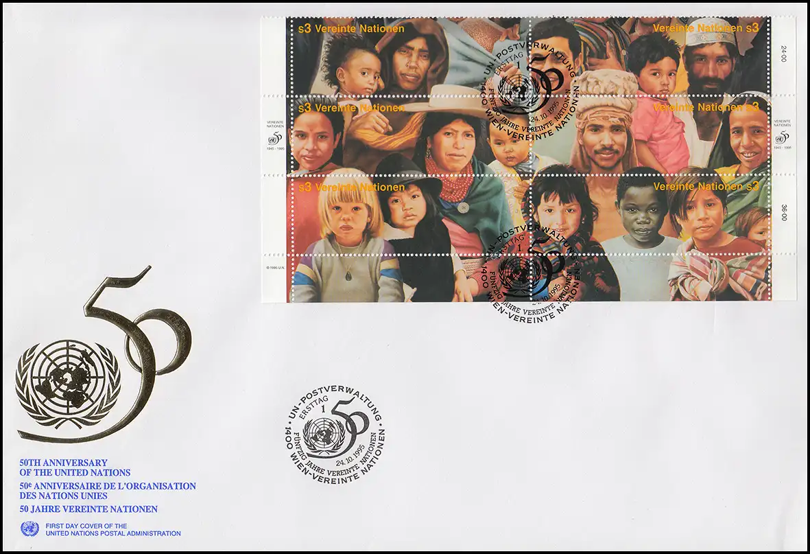 Nations unies Vienne 50 ans Nations Unies 190-201 comme petit arc sur 2 bijoux-FDC 24.10.1995