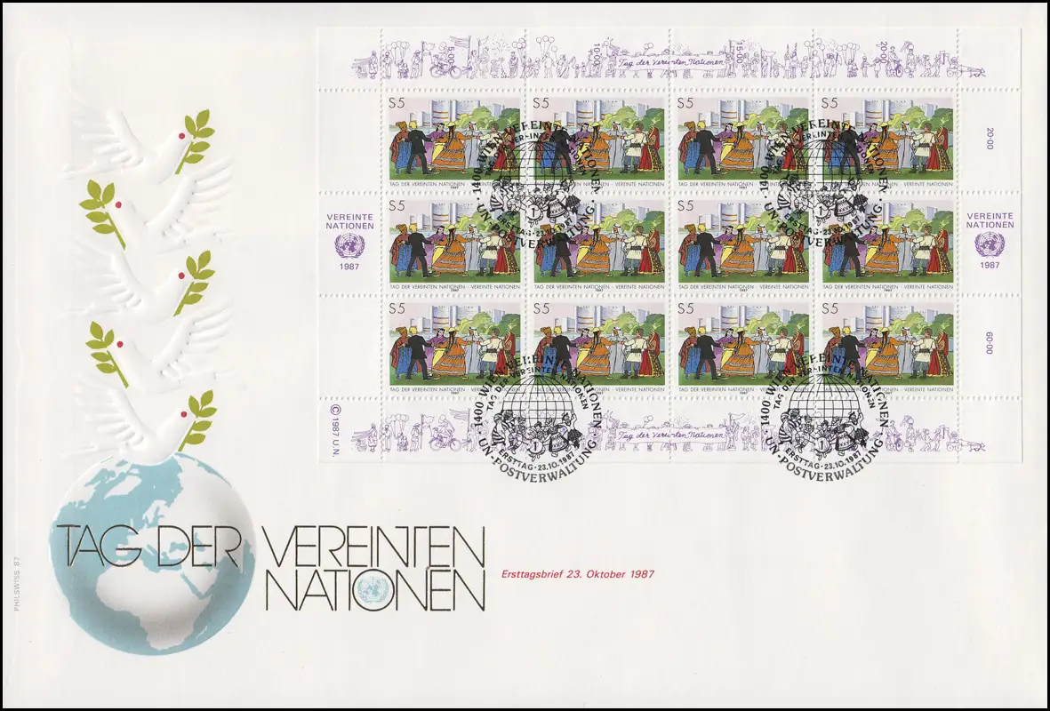 Nations unies Vienne 75-76 Journée des Nations Unies, jeu de petit arc sur 2 bijoux FDC WIENNE 1987