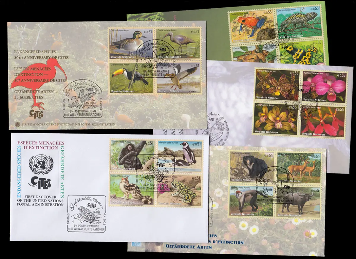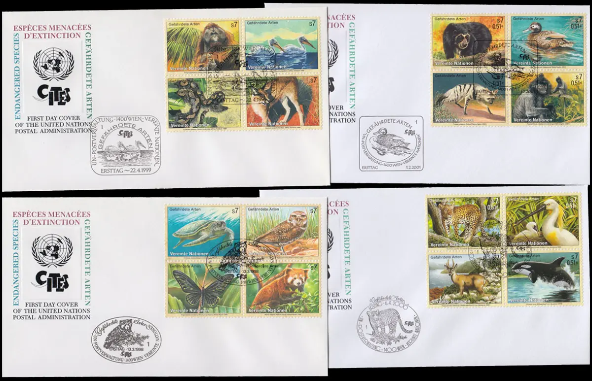 Nations unies Vienne: espèces menacées de 1998 à 2006 en tant que bloc à quatre sur les bijoux FDC